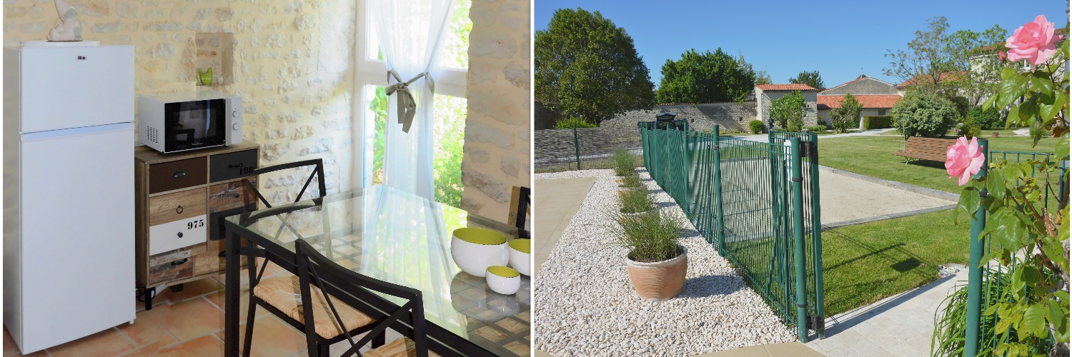 Disponibilités Description Etabli dans l’ancien pigeonnier du Logis des Varennes, le gîte “Les Cendrilles” a été entièrement rénové en 2017, et sa décoration raffinée vous enchantera. D’une superficie de 50m2 (+ terrasse), “Les Cendrilles” est un gîte de plain-pied très spacieux pour deux personnes, qui vous séduira par son charme et son mélange d’authenticité et de confort. Le calme de la campagne environnante est propice au repos et à la détente, alors que les premiers sites touristiques à découvrir dans la Région ne se trouvent qu’à quelques kilomètres. De sa terrasse privée et ensoleillée qui donne sur le jardin du Logis, vous pourrez profiter de la piscine du domaine (en été), du boulodrome, et de la salle de jeux (ping-pong, baby-foot, fléchettes, badminton). Le gîte se compose de cuisine / salle de séjour chambre avec un grand lit double “king size” (180×200 cm) séparable en deux lits simples salle d’eau avec lavabo, douche et wc séparé terrasse (6 m2) Les équipements Wi-Fi gratuit chauffage central au gaz lave-linge (installé dans la salle de jeux) et étendoir à linge Cuisine / Salle à manger : lave-vaisselle frigo avec compartiment congélateur micro-ondes grille-pain cafetière électrique bouilloire électrique Chambre : SMART TV écran plat lit fait à l’arrivée en cas de location des draps Salle d’eau : sèche-cheveux sèche-serviettes Terrasse : table de jardin transats et parasol barbecue Equipement bébé sur demande (lit / chaise haute / table à langer)
